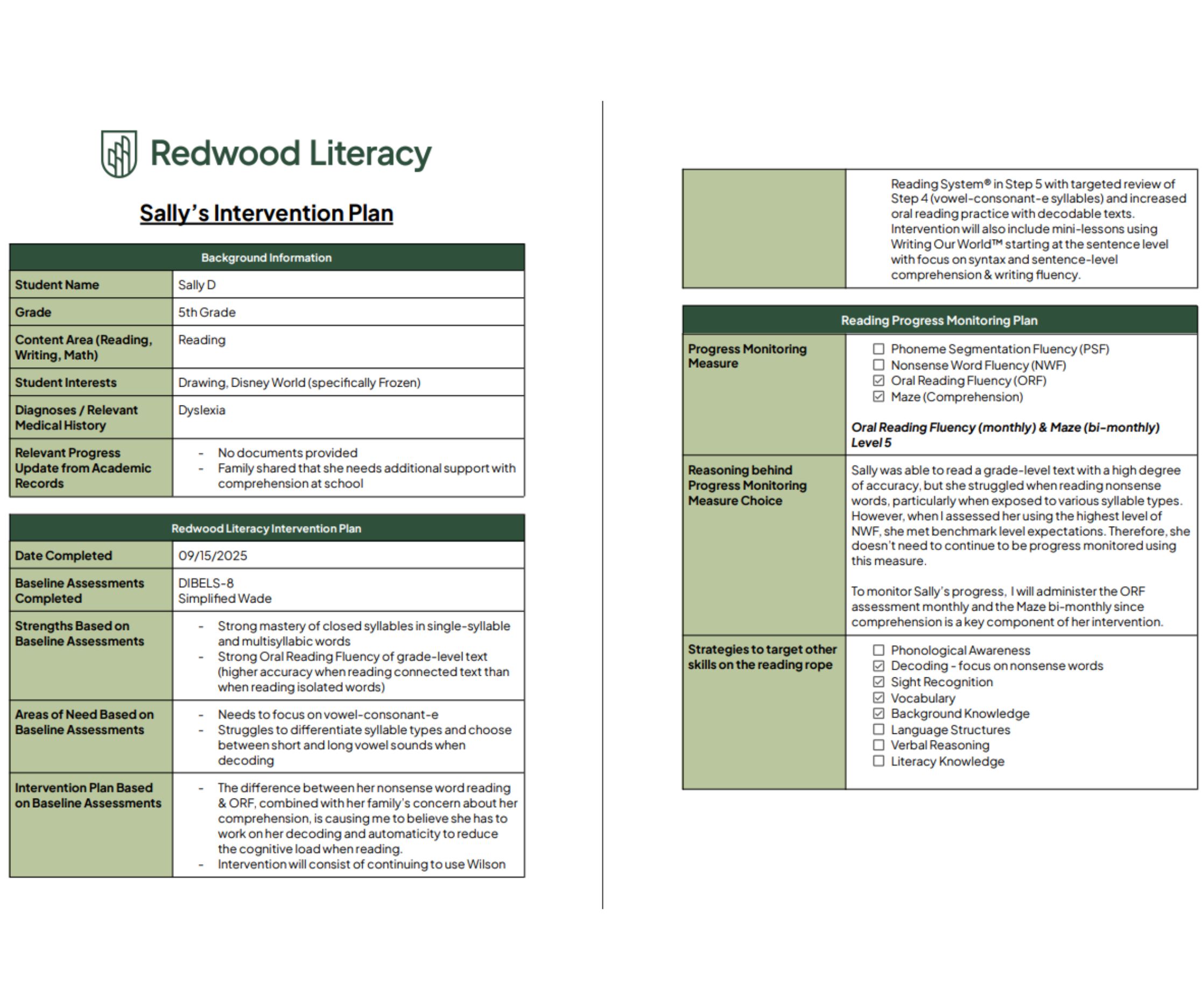 Redwood Literacy’s Individualized Intervention & Data Plans